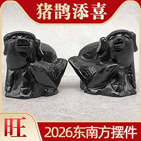 【布局方法】在2026马年,九紫右弼星坐镇的东南喜神位,是汇聚祥瑞之气的风水宝地,能为家庭和个人带来诸多喜庆之事,提升整体运势。想要借助此方位改善风水、催旺运势,需保持喜神位整洁明亮、气流通畅,为吉运降临创造良好环境。此外,可借助风水吉祥物增强气场,在东南方位摆放一对【祥安阁猪鹊添喜】摆件,寓意家族繁荣昌盛、姻缘顺遂美满、事业蒸蒸日上,既能纳福迎祥、添丁增喜,又可镇宅辟邪,护佑家宅平安吉庆。